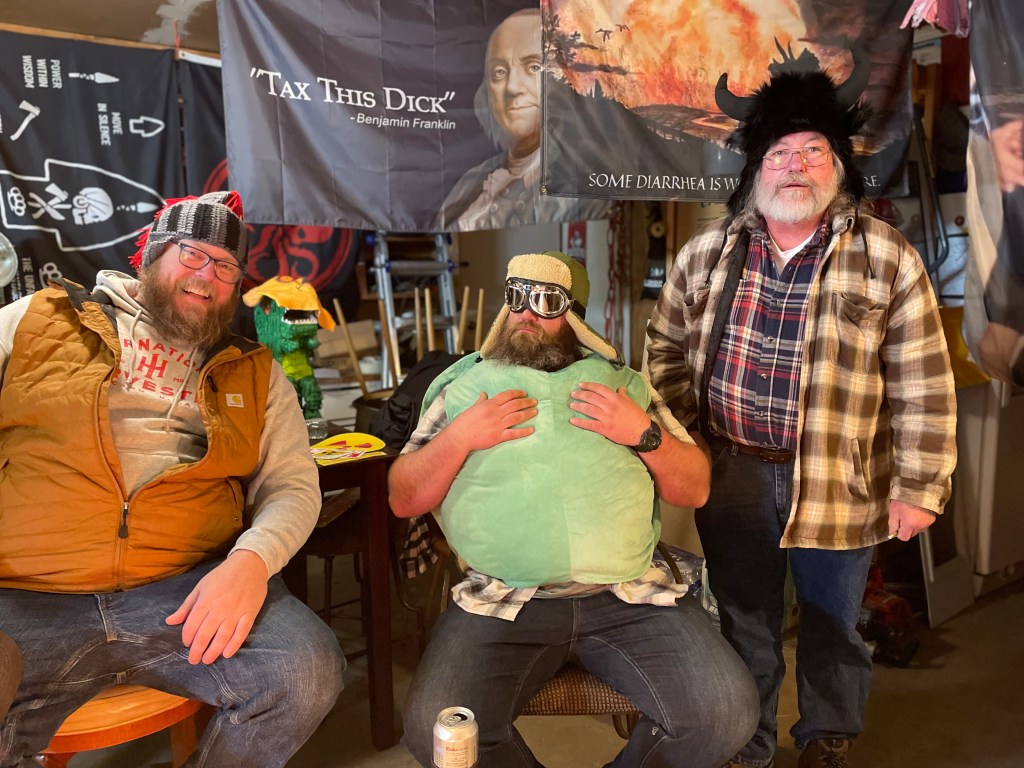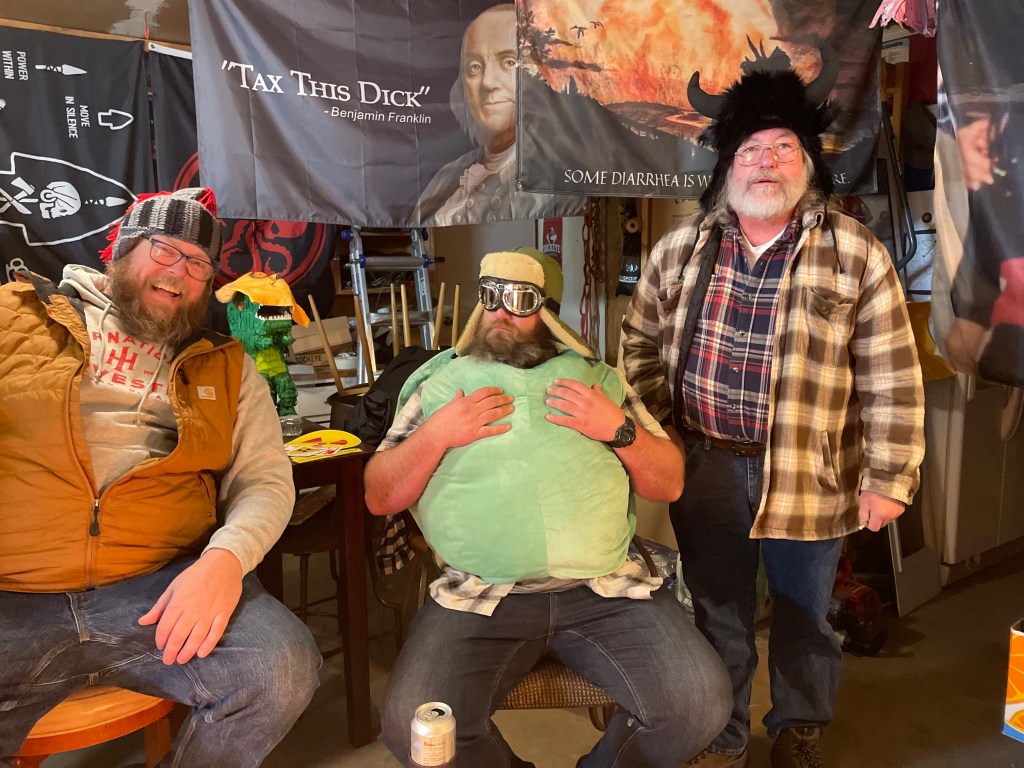 Funny guys, funny hats- and a turtle shell